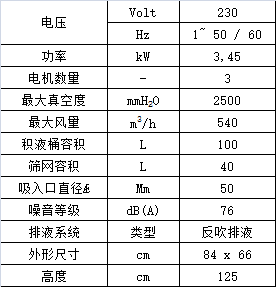 - 安裝有浮球裝置, 當集塵箱液體充滿時,自動停止抽吸,以保護真空馬達;
