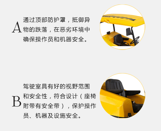 1.全封閉駕駛室,無懼寒冷霧霾,配備供暖系統,操作更舒適