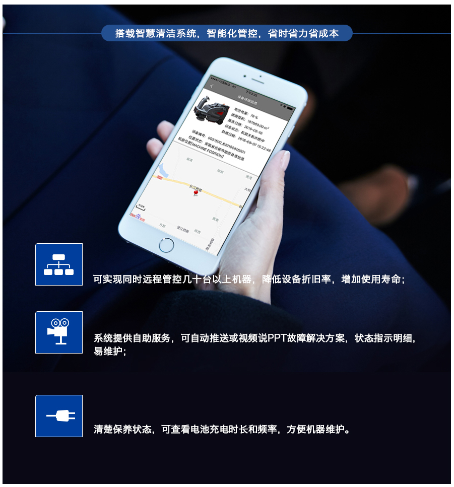 S-1900ED集成前衛的設計理念,智能的操作系統,以及優秀的清掃效果,是國產智能掃地機的佳作。封閉是的汽車駕駛室,舒適安全,適合在雨水,寒冷,惡塵的環境下使用。