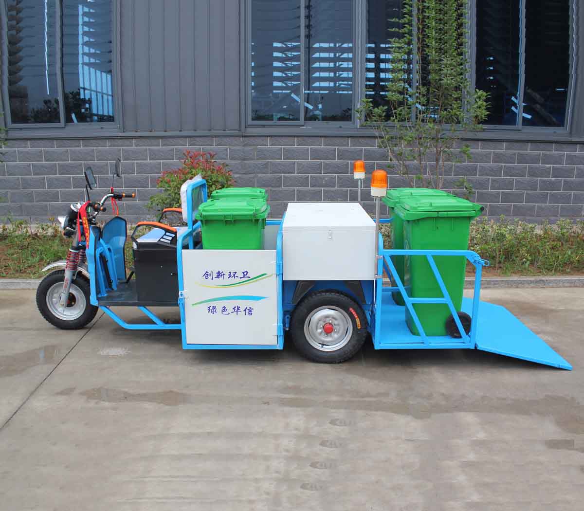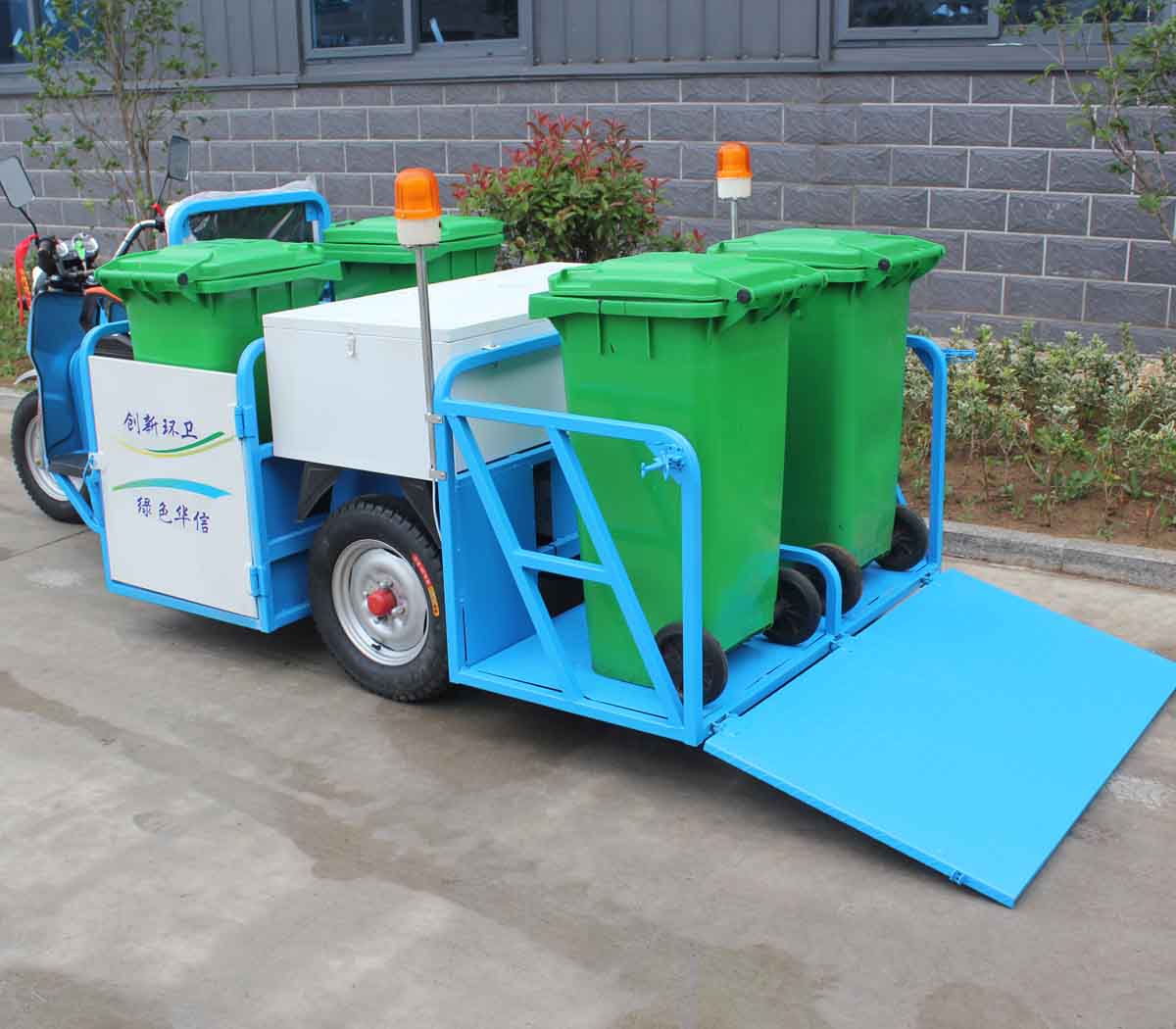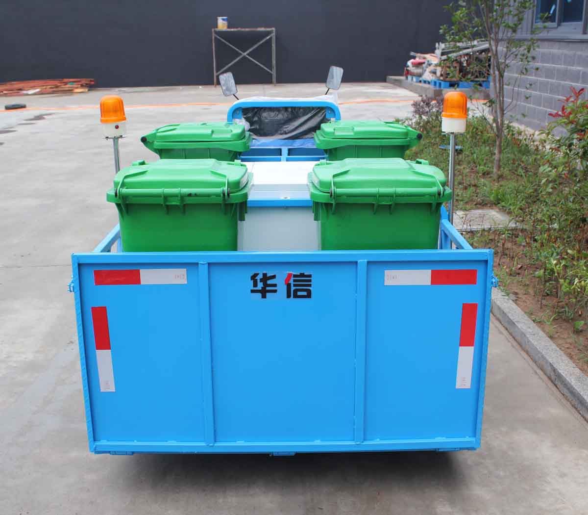 3、經濟適用,可同時裝載4只240L標準垃圾桶,裝卸方便,集垃圾收集、存儲、清運于一體,有效提高作業效率;